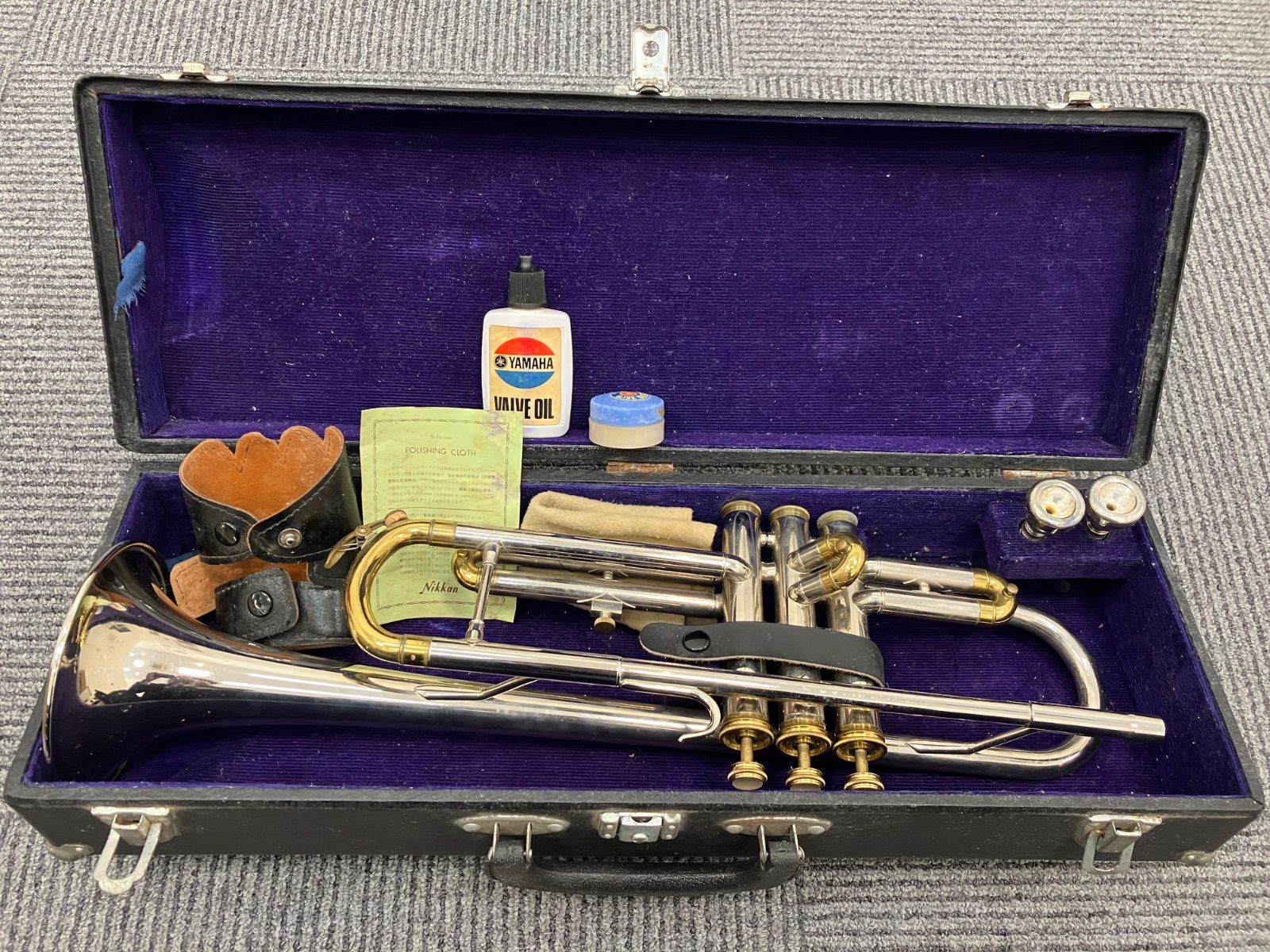 | 商品の特徴 | NIKKAN(現YAMAHA)TR-134 ジャパンヴィンテージ トランペット。YAMAHA Nikkan TR-134 Trumpet ニッカン トランペット。激レアニッカン / NIKKAN TR-134 YAMAHA Nikkan TR-134 Trumpet。NIKKAN(現YAMAHA)TR-134 ジャパンヴィンテージ トランペット。ご覧いただきありがとうございます70年代頃の入門機ですが、最近販売されている中華製の同価格の個体よりも非常に深みのある音で鳴ります全体的に経年によるくすみ等あります3番ピストンのボタンに付いていたカバー?とウォーターキーのコルク部が欠損してますが、ヘコみや目立つダメージはありません演奏も問題なくできましたピストンの動作もすべて良好ですマウスピースとヤマハのハードケースが付属します値下げ交渉はお応えできませんよろしくお願いいたします | ||