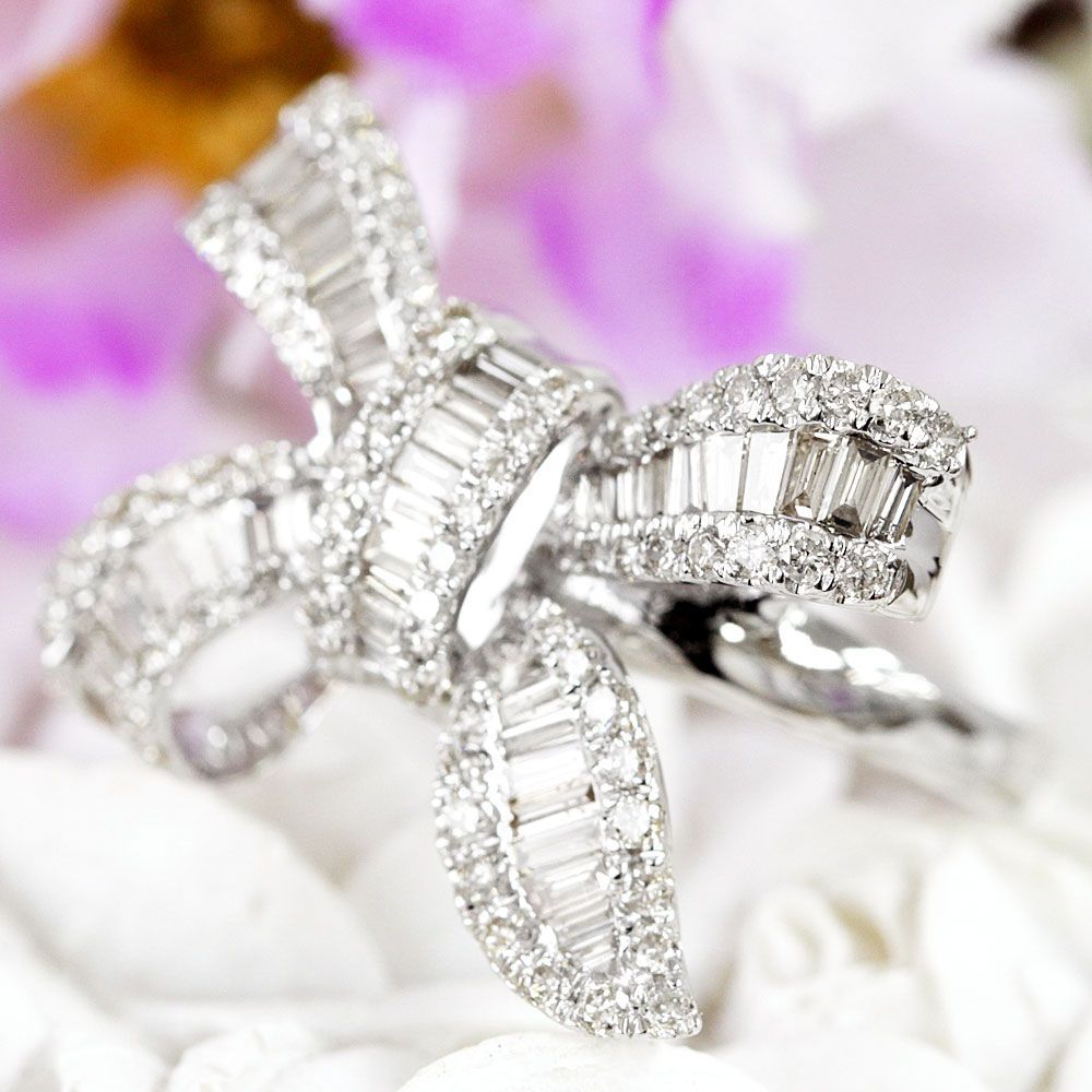 - レディース > アクセサリー > 大人可愛い!リボン モチーフ 1ct ダイヤモンド K18 WG リング 鑑別付 大人可愛い!リボン モチーフ 1ct ダイヤモンド K18 WG リング