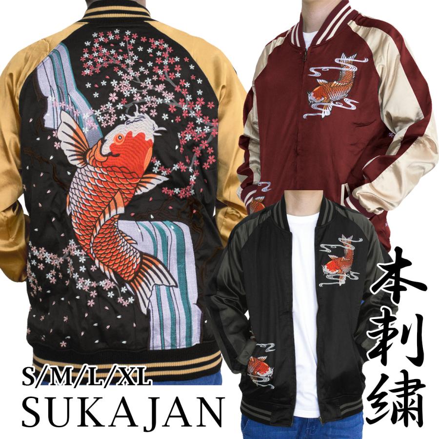 - メンズ > ジャケット・アウター > 稀少カラー 豪華刺繍 別珍 スーベニアジャケット スカジャン ボルドー Lサイズ スカジャン 鯉 メンズ 東洋 50代 別珍 40代 レディース