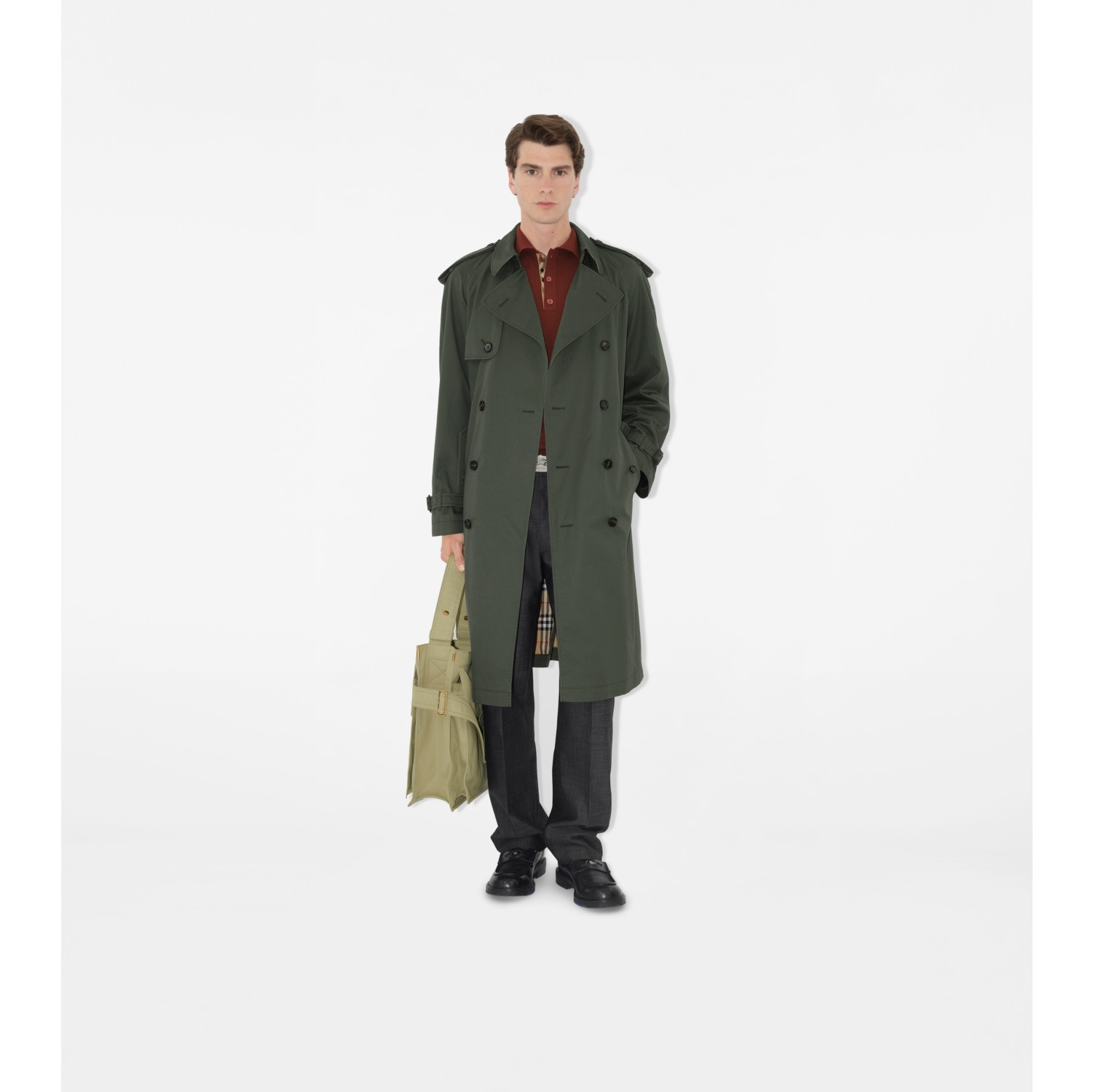 [希少]インテリム GABARDINE TRENCH COAT Mid-length Gabardine Trench Coat in Yew green - Men