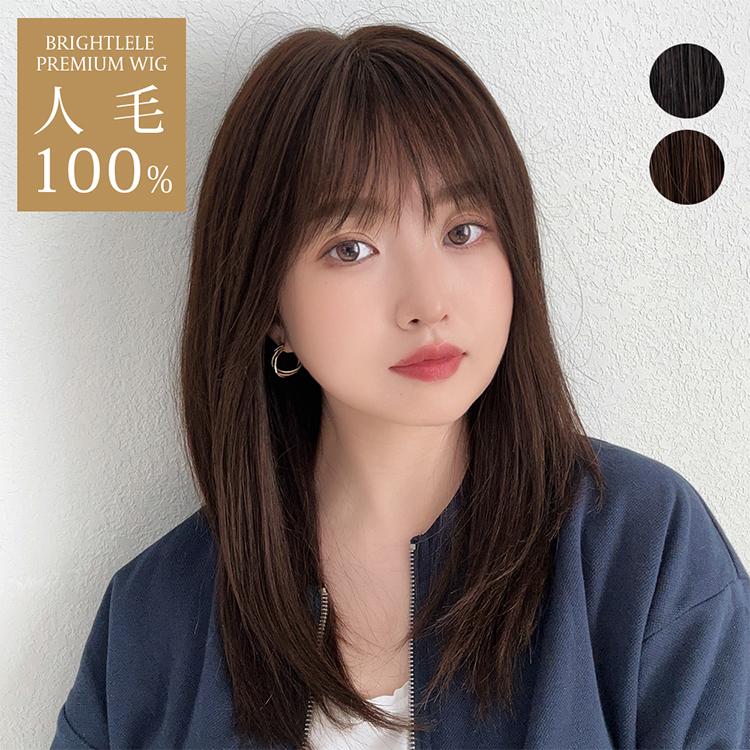 - レディース > ウィッグ・エクステ > フルウィッグ人毛100%医療ウィッグ鎖骨ミディアム センターパート ブラウン Brightlele 医療用ウィッグ 人毛100% 部分手植え ウィッグ